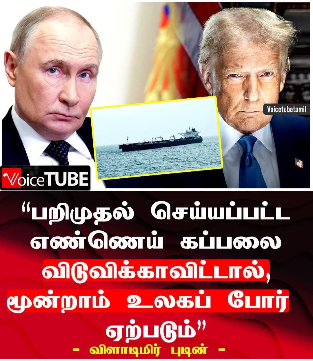 ரஷ்யாவின் நீர் மூழ்கி கப்பல் ஒன்று அமெரிக்காவால் கைப்பற்றப்பட்ட அந்த கப்பலை பின் தொடர்ந்து செல்வதாக தகவல்.அமெரிக்க போர்க்கப்பலை உரசி கொண்டு பறந்த ரஷ்யாவின் மூன்று குண்டு வீச்சு விமானங்கள். இன்னொரு பக்கம் வெனிசுலாவுடன் இணைக்கப்பட்ட ரஷ்ய எண்ணை டேங்கர் கப்பலை அமெரிக்க படைகள் கைப்பற்றி உள்ளன. ரஷ்யாவின் நீர் மூழ்கி கப்பல் ஒன்று அமெரிக்காவால் கைப்பற்றப்பட்ட அந்த கப்பலை பின் தொடர்ந்து செல்வதாக தகவல்.0 Comments ·0 Shares ·1K Views ·1 Plays ·0 Reviews -